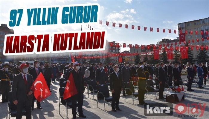 Kars Olay-Vali/Belediye Başkan Vekili Türker Öksüz’ün tebrikleri kabul töreniyle başlayan kutlama programı, Hükümet Konağı önündeki tören alanında saygı duruşu ve İstiklal Marşımızın okunmasının ardından Vali/Belediye Başkan Vekili Türker Öksüz’ün konuşmasıyla devam etti.