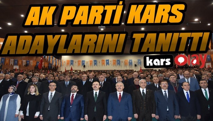Düzenlenen AK Parti Kars Belediye Başkan adayları tanıtım toplantısına AK Parti MKYK üyesi Grup Başkan vekili Mehmet Muş, eski Ulaştırma Denizcilik ve Haberleşme Bakanı Kars Milletvekili Ahmet Arslan, TBMM Tarım, Orman ve Köyişleri Komisyonu Başkanı Kars Milletvekili Prof. Dr. Yunus Kılıç, AK Parti İl Başkanı Adem Çalkın, AK Parti Kars Belediye Başkanı Ensar Erdoğdu ile ilçe belediye başkan adayları katıldı.