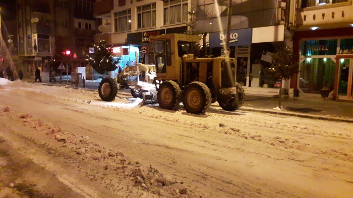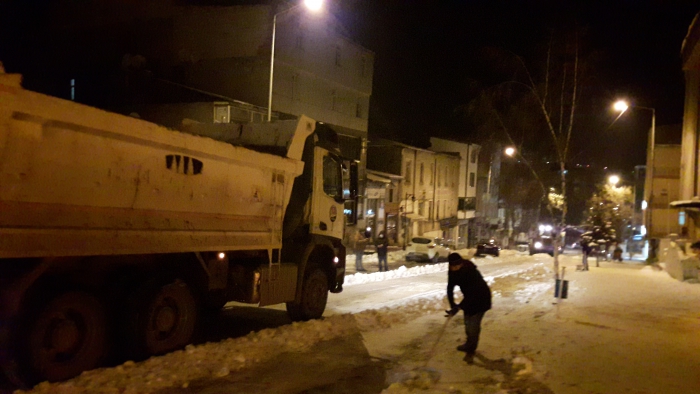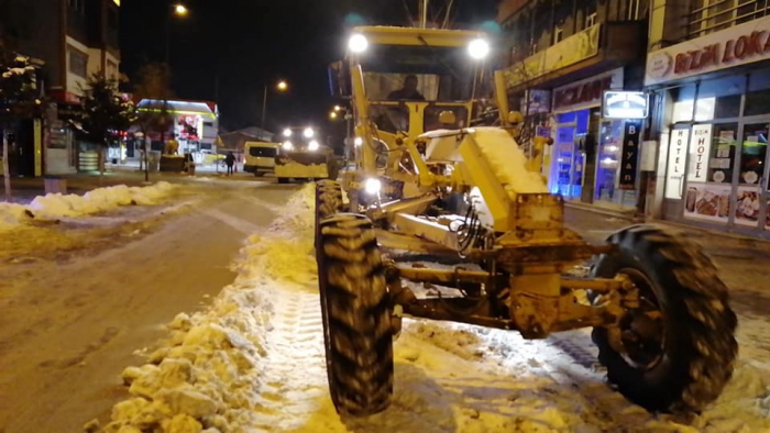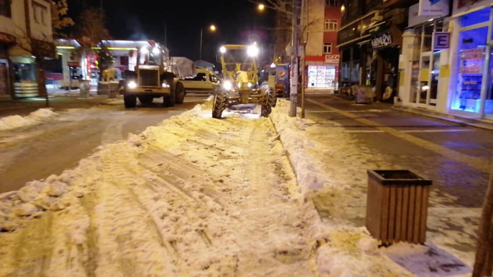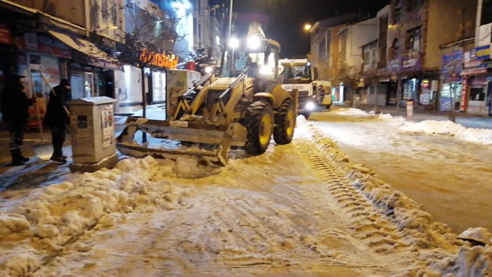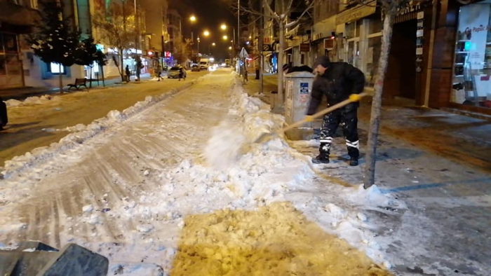 Kars Olay- Kars'ta etkili olan soğuk hava ve kar yağışının ardından belediye ekiplerince başlatılan karla mücadele çalışması ise aralıksız sürüyor. Ana caddelerdeki çalışmalarını tamamlayan ekipler, trafiğin yoğun olduğu diğer cadde ve sokaklardaki kar ve buzları temizliyor. Kazım Paşa Caddesi ve diğer caddelerde karla mücadele çalışmasını sürdüren ekipler, gece saatlerinde de karla mücadele çalışmasını devam ettiriyor.