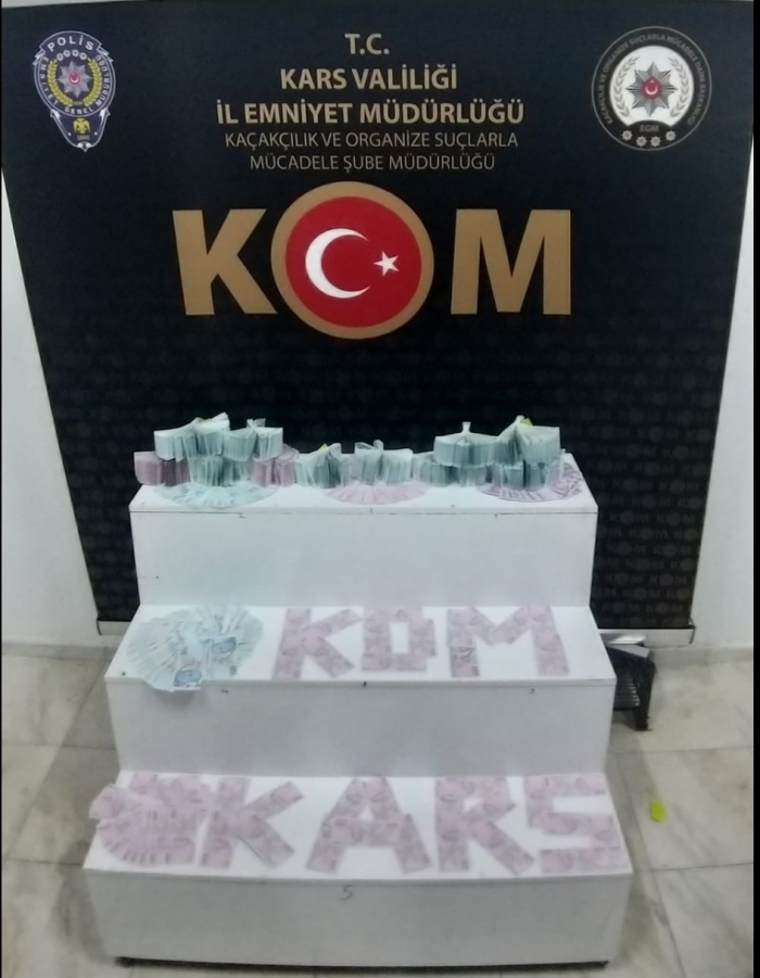 Kars Olay- Kars Emniyet Müdürlüğünden yapılan yazılı açıklamada; "Müdürlüğümüz KOM Şube Müdürlüğünce ilimize sahte para getirileceği bilgisi alınması üzerine yapılan çalışmalar kapsamında;