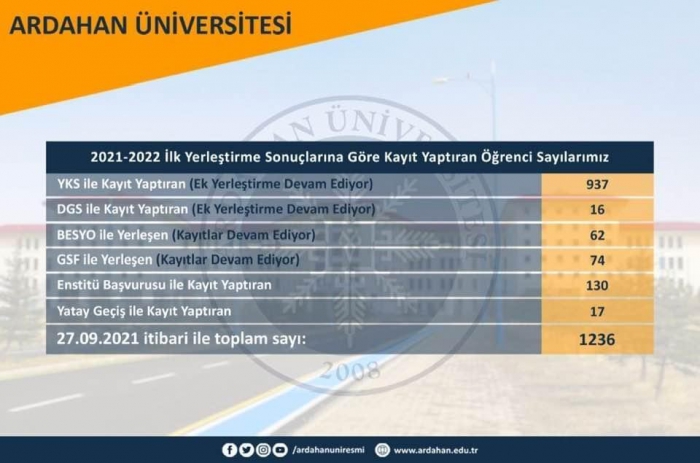 Kars Olay- Ardahan Üniversitesine ayrılan 635 kontenjana sadece 204 öğrencinin yerleşmesi Ardahanlılar tarafından şaşkınlıkla karşılanmıştı. Ardahan Milletvekili Orhan Atalay, sosyal medya hesabından yayımladığı tabloda, Ardahan Üniversitesi’ne YÖK tarafından açılan 635 kontenjana bu sene toplam 1.236 öğrencinin kayıt yaptırdığı bilgisini paylaşarak Rektör Mehmet Biber'e sahip çıktı.