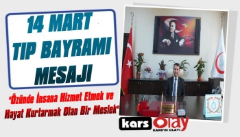 Kars Olay- Kars İl Sağlık Müdürü Uzm. Dr. Zakir Lazoğlu mesajının devamında şu ifadelere yer verdi. "Tıbhane-i Amire ve Cerrahhane-i Amire” adlı tıp okulunun açılış tarihi olan 14 Mart 1827, ülkemizde modern tıp eğitiminin başlangıcı olarak kabul edilmektedir. Tıp Bayramı, ilk kez, 1. Dünya savaşı sonunda, İstanbul'un işgal edildiği günlerde, yabancı işgal kuvvetlerine karşı tıp öğrencilerinin bir tepkisi olarak 1919 yılında kutlandı. Günümüze kadar gelen bu 14 Mart kutlamaları, artık içinde bulunduğu haftayı da kapsayacak şekilde, “Sağlık Haftası” olarak kutlanmaktadır.