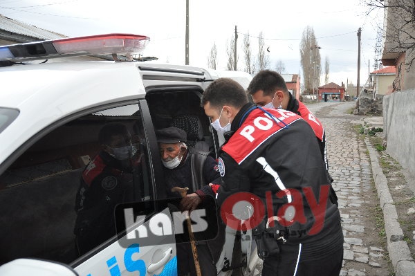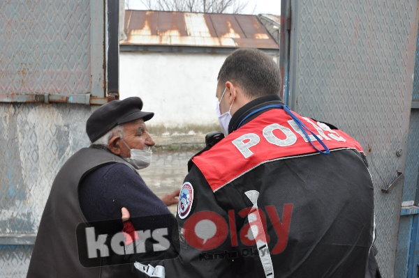Kars Olay-İçişleri Bakanlığının aldığı koronavirüs tedbirleri kapsamında 65 yaş ve üstü yaşlıların sokağa çıkma kısıtlaması tüm Türkiye’de uygulanmaya devam ediyor. Kars'ta yasağa rağmen dışarı çıkan yaşlı bir vatandaşın ihbarını alan polis ekipleri 79 yaşındakı yaşlı amcayı eczaneye ilaç almaya giderken buldu. Yaşlı amcayla birlikte eczaneye giderek ilacını alan Kars Asayiş Şube Müdürlüğü Motosikletli Polis Timleri, yaşlı adamı yaşadığı eve götürdü. 65 yaş ve üstü sokağa çıkma kısıtlaması bulunan 79 yaşındaki amcanın evine giden polis ekipleri bakıma muhtaç olduğunu saptadığı vatandaşı daha sonra Kars Huzur Evi Yaşlı Bakım ve Rehabilitasyon Merkezine teslim ettiler.