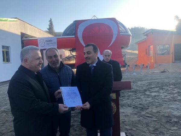 Arslan, “Sarıkamış kayak tesislerinde pist aydınlatma ve kapalı sistem kabinleri olan yeni telesiyejimizin KULLANIM YETKİ BELGESİ teslim programına katıldık. Gençlik ve Spor ile Kültür ve Turizm Bakanlarımıza, katkısı olanlara, yapımında emeği geçenlere teşekkür ediyorum.” dedi.