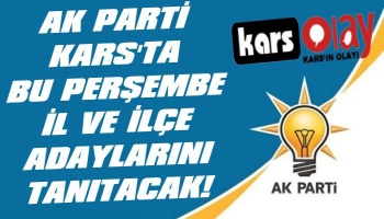 Edinilen bilgiye göre AK Parti Kars İl Başkanlığı tarafından 24 Ocak Perşembe günü Kars'ta il ve ilçe belediye başkan adayları partililer ve basın mensuplarına tanımı yapılacak. Aday Tanıtım Toplantısı'na AK Parti Grup Başkan Vekili, İstanbul Milletvekili MYK Üyesi Mehmet Muş'un katılacağı ve program hakkında AK Parti İl Başkanlığı tarafından daha sonra açıklama yapılacağı öğrenildi.
