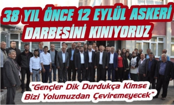38 yıl önce bugün, kendilerinden menkul ekonomik kaos, sosyal ve siyasal kaos çıkarılarak Türk demokrasi tarihimize kara bir leke olarak olarak geçen 12 Eylül Askeri Darbesi yaşanmıştır. Darbe sürecinde, yaklaşık 650 bin kişi gözaltına alınmış, 1 milyon 683 bin kişi fişlenmiş, 14 kişi cezaevlerindeki açlık grevlerinde ölmüş, 171 kişi sorgularda ve cezaevi işkencelerinde can vermiş, 49 kişi idam edilmişti.