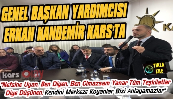 Kars Olay-İl başkanlığına kalabalık ekiple gelen Kandemir partililerin meşaleli gösterisiyle karşılandı. Slogan ve alkışları da estik etmeyen gençlerin sevgi gösterisi eşliğinde toplantı salonuna geçti.