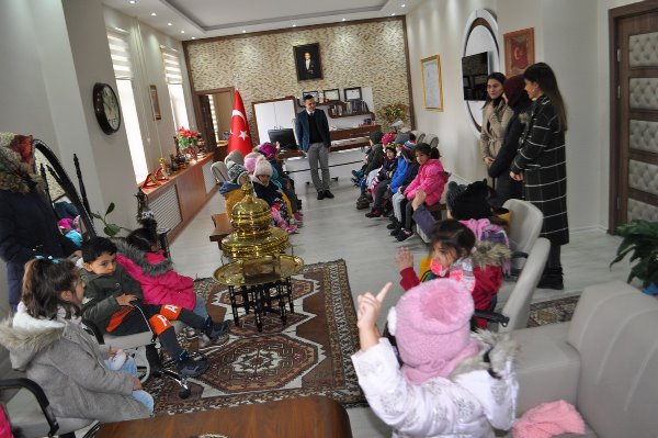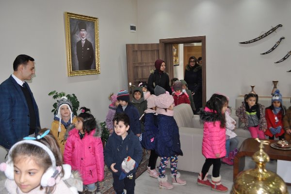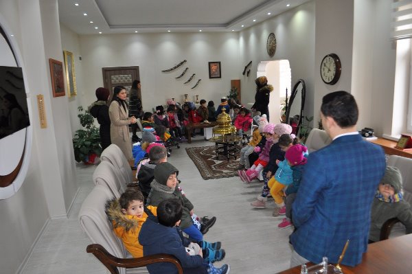 Kars Olay-Kars'ın Arpaçay ilçesi Merkez Anaokulu’nun minik öğrencileri hem devlet kurumlarını tanımak hem de meslekler hakkında bilgi edinmek amacıyla öğretmenlerinin rehberliğinde Arpaçay ilçesindeki kurumları ziyaret ettiler. Bu kapsamda Kaymakamlığı da ziyaret eden öğrenciler, Kaymakam Abdil Koç'un misafiri oldular. Çocuklara mesleğini ve kurumunu anlatan Kaymakam Koç, bu ziyaretten duyduğu memnuniyeti dile getirerek minik öğrencilere ve öğretmenlerine teşekkür etti.