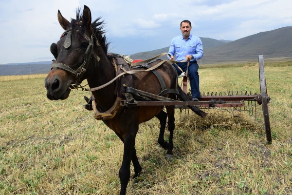Kars Olay-Hasat yapan çiftçileri tarlada ziyaret eden Vali Masatlı, çiftçilerle birlikte tarla topladı, patos attı. Tarlada çiftçilerle birlikte çalışan Vali Masatlı, yer sofrasında çiftçilerle birlikte karpuz yedi. Çiftçilerle yaptığı sohbette, Ardahan’ın ekonomik değerlerini üst seviyeye çıkarmak için çaba sarf ettiklerini, bu anlamda çiftçilerin, hayvancılığın yanında tarımdan da büyük ekonomik gelir elde etmeleri için çaba sarf ettiklerini söyledi. Ardahan’da ekonomik her faaliyetle bire bir temasta olduğunu da belirten Vali Masatlı, “Bölgemizde hasat dönemi olduğu için çiftçilerimizi ziyaret edelim istedik. Bölgemizde diğer illere göre yaz geç geliyor ve yaz mevsimi biraz kısa, hal böyle olunca da çiftçilerimiz bu dönemde yoğun bir tempoyla çalışıyorlar. Bizde serhat şehrimiz güzel Ardahan’ımızda sizlerin bir gününe eşlik edelim istedik” dedi.