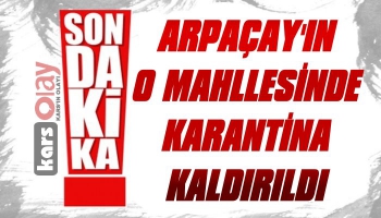 Kars Valiliği'nden yapılan açıklamada: "Koronavirüs (Covid-19) salgını ile mücadele tedbirleri kapsamında; Kars'ın Arpaçay İlçesi Yalınçayır Mahallesinde uygulanmakta olan karantina 14 Eylül 2020 Pazartesi günü saat 14.00 itibariyle kaldırılmıştır." denildi.