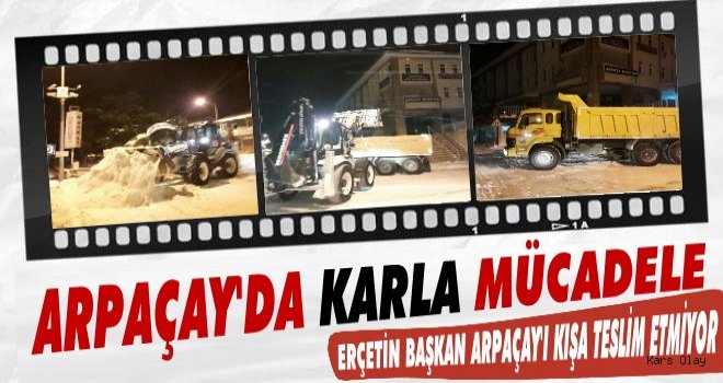 Belediye Başkanı Erçetin Altay, “İlçemiz yoğun kar alan bir bölgede bulunmakta. Lapa lapa yağan karın ardından ilçe merkezinde yoğun bir kar birikimi olmakta. Bizlerde kar yağışı durur durmaz hemen çalışmaları başladık. Kepçeler, greyderler ve kamyonlarla karlar taşınıyor. Personellerimiz bu çalışmalarda yoğun çaba harcıyor. Karla mücadele çalışmalarımız gece-gündüz devam ediyor. Ben buradan tüm belediye personellerimize, meclis üyelerimize ve vatandaşlarımıza, esnaflarımıza teşekkür ediyorum. Daha temiz, daha güzel, daha yaşanabilir bir Arpaçay için el ele verdik.“ dedi.