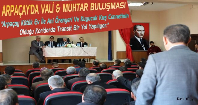 Arpaçay Kaymakamı Abdil Koç, İl Özel İdaresi Genel Sekreteri Yusuf İzci, Arpaçay Belediye Başkanı Erçetin Altay’ında hazır bulunduğu toplantıda Kars Valisi Rahmi Doğan, muhtarlardan köy ve mahallerinde ki sorun ve isteklerini dinleyerek, çözümü için yetkililere talimatlarda bulundu.