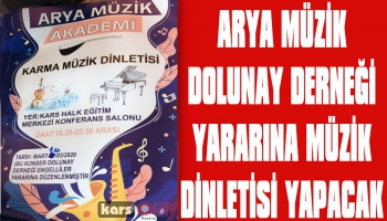 Kars Olay-Açıklamada, 2Arya Müzik Akademi olarak geleneksel hale getirmiş olduğumuz kurs ve müzik eğitimi vererek yetirip hazırladığımız ve öğrenci performans ölçme ve değerlendirme ile bahara merhaba konserleri düzenlemektedir. Her yıl düzenlenmiş olduğumuz etkinlikler kapsamında 2019/2020 yıl içerisinde 14/03/2020 cumartesi günü saat 18/30/20/30 arası karma müzik dinletisi düzenlenecektir. Ve bu gösteride elde ettiğimiz geliri dolunay derneği engelliler birimine bağışlanacaktır.