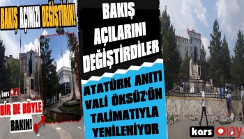Kars Olay- Kars Olay'ın geçtiğimiz Haziran ayında manşetine taşıdığı "Atatürk Büstünün Bakımsız Hali Tepki Çekiyor" haberinin ardından Kars Valiliği Atatürk anıtının çevresinde bakım ve yenileme çalışması başlattı.