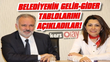 Başkan Bilgen tarafından basınla paylaşılan tabloda 06-30 Nisan 2019 tarihleri arasında Kars Belediyesi'nin Nisan ayı dönem içi Geliri 4.378.477,27 TL olurken, dönem gideri 3.454.880,57 TL oldu. Açıklanan tabloda gelir gider kalemleri ise ayrıntılı bir şekilde kamuoyu ile paylaşıldı.