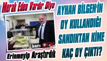 Kars Olay-Kars Belediye Başkanı Ayhan Bilgen'in 31 Mart Mahalli İdareler genel seçimleri için oy kullandığı Haydar Aliyev Mesleki ve Teknik Anadolu Lisesi'ndeki sandıktan yine Ayhan Bilgen ilk sırada çıktı.