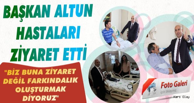 Kars Olay / ÖZEL- Selim Belediye Başkanı Coşkun Altun geçtiğimiz gün bir duyarlılığa imza attı. Kars Harakani Devlet Hastanesinde tedavi için yatmakta olan hastaları ziyaret ederek hastalara moral verdi. Başkan Altun Selim’li vatandaşları da hastanede ziyaret ederek yalnız olmadıklarını belirtti. Atun "Bir belediye başkanı, vatandaşının sağlığında da, hastalığında da yanında olmalıdır. Bizim hizmet felsefemiz budur" vurgusu yaparak hastalara geçmiş olsun ziyaretinde bulundu. Ayrıca hastanede yatmakta olan Ali Murat ismindeki küçük çocuğu ziyaret edip özel ilgilenen Başkan Altun küçük çocuğu ve ailesini de mutlu etti.