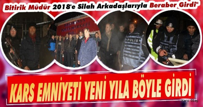 Kars Olay- Kars İl Emniyet Müdürü Ümit Bitirik, Emniyet Müdür Yardımcıları ve Şube Müdürleri yeni yılın ilk dakikalarında görevli polisleri önce Kazımpaşa Polis Merkezi Amirliği'nde, ardından ise yağmurlu havada yeni yılın huzur ve asayiş içerisinde geçmesi için Cumhuriyet Meydanındaki uygulama noktasında görevli ekipleri ziyaret ederek tatlı ikramında bulundu.