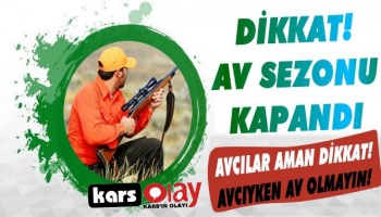 Kars Olay-Tarım ve Orman Bakanlığı 13. Şube Müdürlüğü Kars Şube Müdürlüğü, yaptığı yazılı açıklamada, av ve yaban hayvanlarının üreme dönemi başlaması nedeniyle 03 Mart 2019 tarihinden itibaren av yasağı getirildiğini duyurdu. Bu süre zarfında toplumun tüm kesimlerinin doğal ortamlara çıkarken daha hassas hareket etmesi gerektiği belirten yetkililer, "2018-2019 Av Dönemi Merkez Av Komisyonu uyarınca av sezonu, 03 Mart 2019 tarihi itibariyle ülke genelinde kapanmıştır.