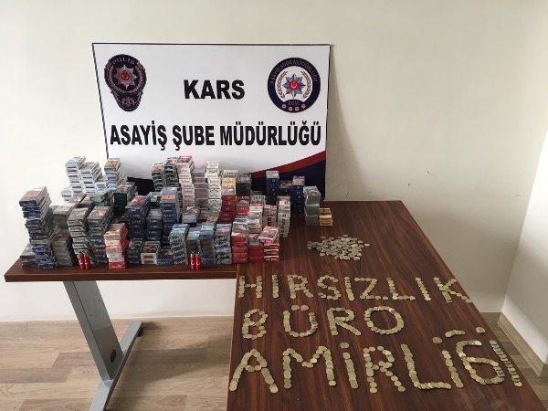 Kars İl Emniyet Müdürlüğü'nden yapılan yazılı açıklamada; "27/07/2019 ve 08/08/2019 tarihlerinde ilimiz de muhtelif iş yerlerinde meydana gelen 28.500 TL tutarında sigara hırsızlığı ve hırsızlığa teşebbüs olayları ile ilgili Asayiş Şube Müdürlüğü Hırsızlık Büro Amirliği ekiplerinin çalışmaları neticesinde: Hırsızlık ve hırsızlığa teşebbüs olaylarını Diyarbakır ilinden ilimize hırsızlık amacıyla gelen Ü.A ve F.T isimli şüphelilerin gerçekleştirdiği tespit edilmiş, şüpheliler çalmış oldukları sigaralar ile birlikte Diyarbakır iline giden otobüste yakalanarak göz altına alınmışlardır. Şüphelilerden ele geçirilen yaklaşık 11.000 TL değerindeki muhtelif markalarda sigara ve para işyeri sahiplerine teslim edilmiş olup, adli makamlara sevk edilen şüpheliler 09.08.2019 günü tutuklanarak cezaevine gönderilmişlerdir." denildi.