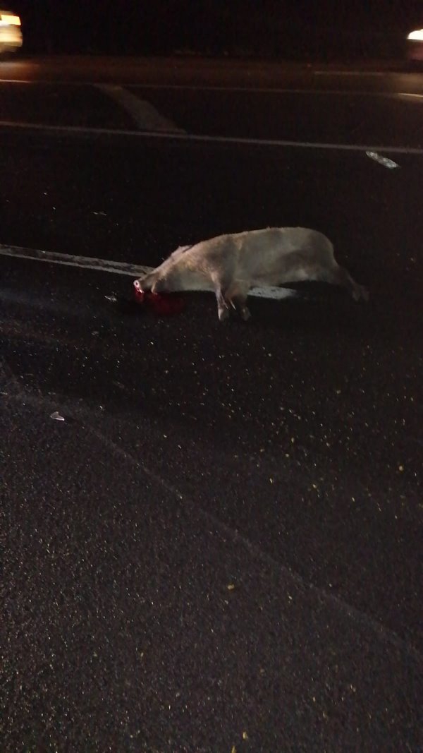 Öte yandan asfalta savrulan domuzlar otomobil sürücüsü ve yolu kullanan sürücülerin yardımıyla yol kenarına kaldırıldı.
