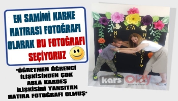 Kars Olay-Kars'ın Kağızman ilçesi Karabağ Köyü Karne törenininden bir fotoğraf karesi adete öğretmenle öğrencinin abla kardeş samimiyetini ortaya koydu. 4. Sınıfa giden küçük Baran'ın bayan öğretmeniyle güreş tutar gibi hatıra fotoğrafı çektirmesi ise standart fotoğrafın dışında yaratıcı bir foto olmuş. Minik Baran'la sınıf öğretmeninin güreş tutması ise öğrenci öğretmen ilişkisinden daha çok abla kardeş ilişkisini yansıtmış.