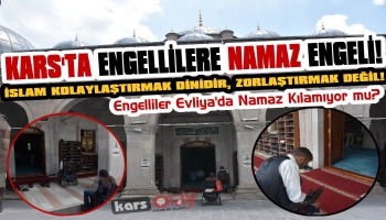 Kars Olay- Kars'ta bu gün öğlen namazını Evliya Camiinde kılmak isteyen engeli vatandaşlar camii içinde değil de dışarıda yanı caminin dışında namaz kılmak zorunda kaldırlar. Türkiye'nin bir çok yerindeki camiiler engelli dostu cami olarak yeniden yapılandırılmasına rağmen Kars'taki engelliler ise hala camilerde namaz kılmak istediklerinde dışarda kalıyorlar. Evliya camii'ye gelip namaz kılmak isteyen bedensel engelli vatandaşların kapının önünde kalması ise malesef bu istenmeyen görüntüleri meydana getirdi.