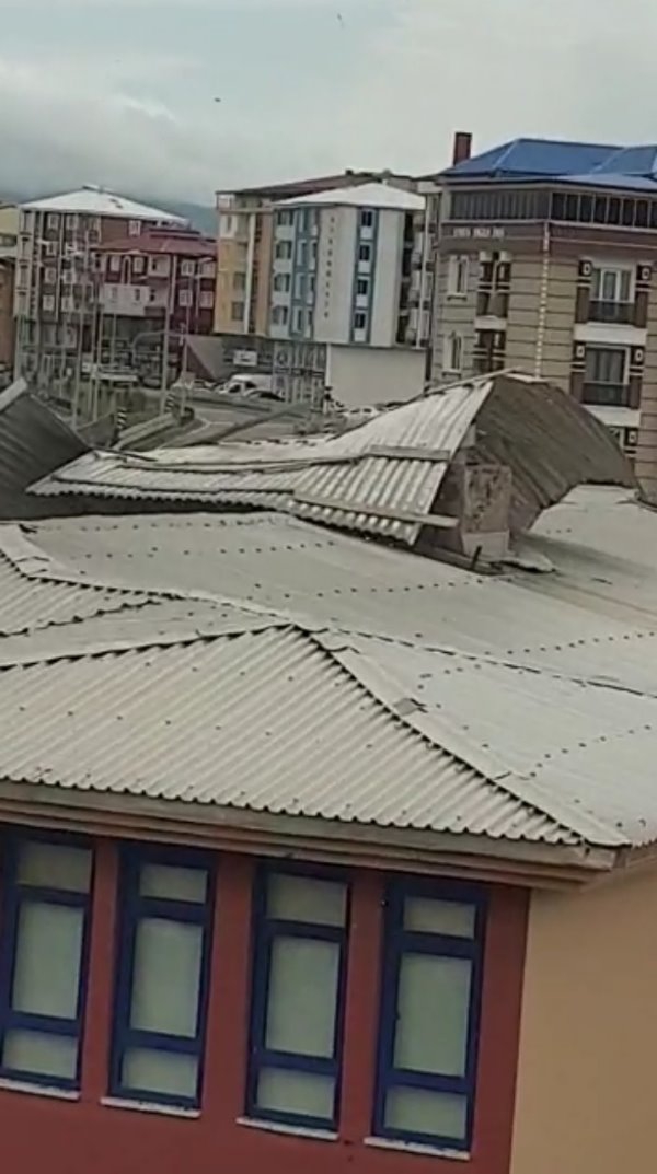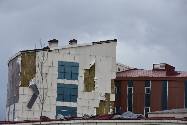 Kars Olay- Kars'ta fırtına nedeniyle Harakani Devlet Hastanesi’nin çatısının bir bölümü ve kaplamalar yerinden söküldü, bazı kaplamalar yola savrulurken araçların zarar görmemesi için hastaneye giriş yolu bir süreliğine geçici olarak trafiğe kapatıldı.