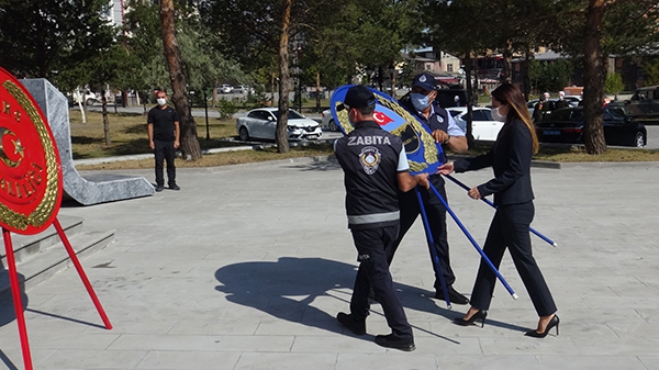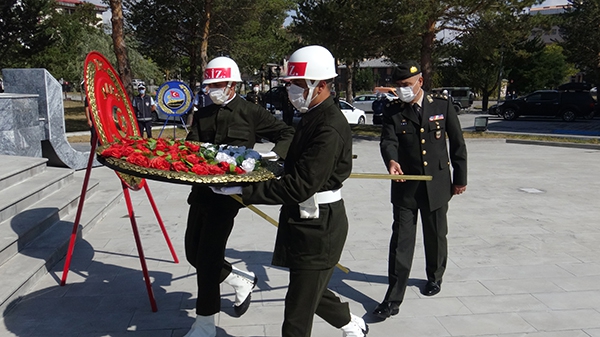 Atatürk Anıtına çelenkleri; Kars Valisi Türker Öksüz, 14 Mekanize Piyade Tugay Komutan Yardımcısı Albay Erhan Altın ve Belediye Başkan Vekili Şevin Alaca sundu.