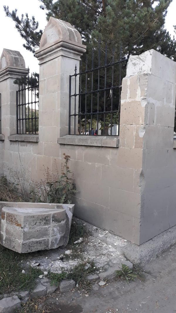 Önce Cami duvarının taşlarının düşmesine uyarı yazısı ve şerit çekerek Kars'ı bu çirkin görüntüye mahkım eden yetkililer daha sonra gelen tepkiler üzeirne çare olarak, taşı yeniden tamir etmek yerine uyarı yazısı ve ikaz şeridini kaldırmakta buldular.