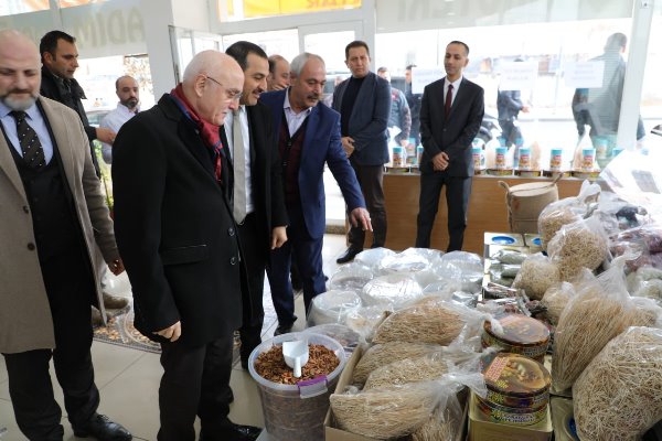 İçişleri Bakan Yardımcısı Tayyip Sabri Erdil ve Vali Öksüz, daha sonra Kars’a ait yöresel ürünler satan bir esnafımızı ziyaret ederek, satılan ürünler hakkında bilgi aldılar.