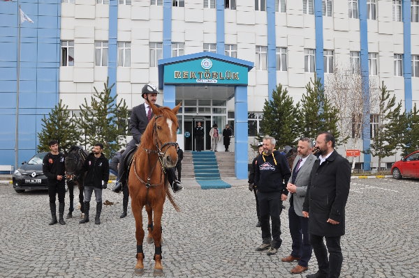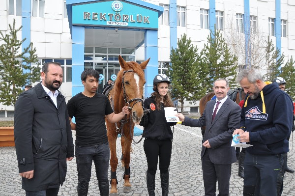 Kafkas Üniversitesi Rektörlük binası önünde düzenlenen seremoniye, Rektör Prof. Dr. Hüsnü Kapu, Genel Sekreterimiz Doç. Dr. Alpaslan Yüce, Atlı Spor Kulübü kurucu üyesi Prof. Dr. Zati Vatansever, ATAUM Müdürü ve Atlıspor Kulübü faaliyetlerinden sorumlu Dr. Öğr. Üyesi Celal Şahin Ermutlu, idari personel ile kulüp üyesi öğrenciler katıldı.