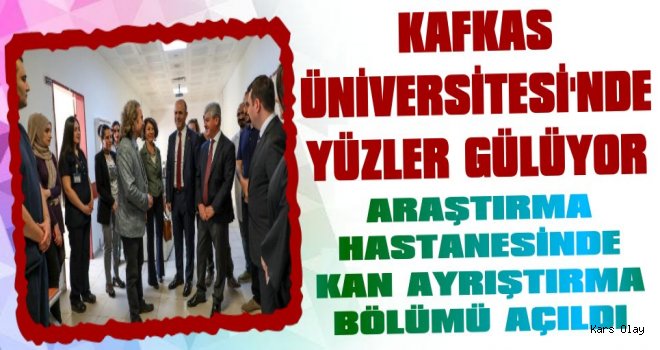 Kars Olay- Kafkas Üniversitesi Sağlık Araştırma ve Uygulama Hastanesi Aferez Ünitesi açılışı, Kars Valisi Rahmi Doğan, KAÜ Rektörü Prof. Dr. Sami Özcan ve eşi Prof. Dr. Ayla Özcan, İl Sağlık Müdürü Uzm. Dr. Zakir Lazoğlu, Hastane Başhekimi Dr. Öğr. Üyesi Yakup Baykuş ve beraberlerindeki heyetle yapıldı.