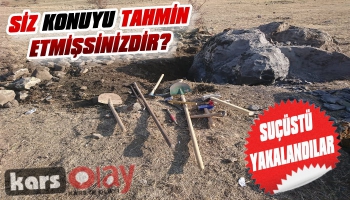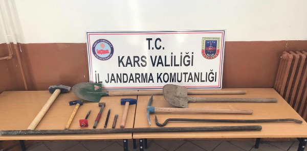 Kars Olay-Kars Valiliği'nden Yapılan Yazılı Açıklamada: "Valiliğimiz kontrolünde, İl Jandarma Komutanlığımız tarafından 17 Kasım 2019 tarihinde Kağızman İlçesi Çeperli Köyü mevkiinde izinsiz kazı yapan 8 şüpheli şahıs suç aletleri ile birlikte ele geçirilmiştir.