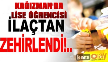 Kars Olay-Kağızman ilçesinde bir okulun pansiyonunda kalan lise öğrencisi B.Y ilaç zehirlenmesi şüphesiyle hastaneye kaldırıldı.öğrencinin durumunun iyi olduğu öğrenildi.