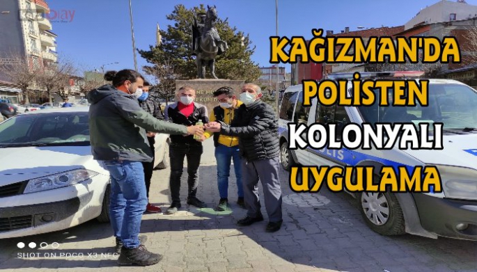 Kars Olay- Koronavirüsle mücadele kapsamında Kağızman'da Cumartesi sokağa çıkma kısıtlamasıda uygulama yapan polis vatandaşlara kolonya ikram etti, “Covid-19 salgını ile mücadelede toplumsal ve bireysel sağlığımızın korunmasına yönelik olarak uyguladığımız sokağa çıkma kısıtlamasına devam edilmektedir. Kağızman İlçe Emniyet Müdürlüğü,ekiplerince, ilçe genelinde 'Huzur- Güven' uygulaması gerçekleştirildi. Polis,ekipleri tarafından ilçe genelinde sabah 09.00 ile akşam 22.00 saatleri arasında sorumluluk alanındaki mahallelerin girişlerinde denetim gerçekleştirildi. Durdurulan araçların plakaları sorgulanırken, araçlarda bulunan kişilere de kimlik sorgusu yapıldı. Polis ekiplerine bağlı bomba ve narkotik köpekleri tarafından şüpheli görülen araçlarda arama gerçekleştirildi. Maske takmayan vatandaşlar kolonya ikram edip uyarılırken, sokağa çıkma kısıtlamasını ihlal eden kişilere cezai işlem uygulandı.