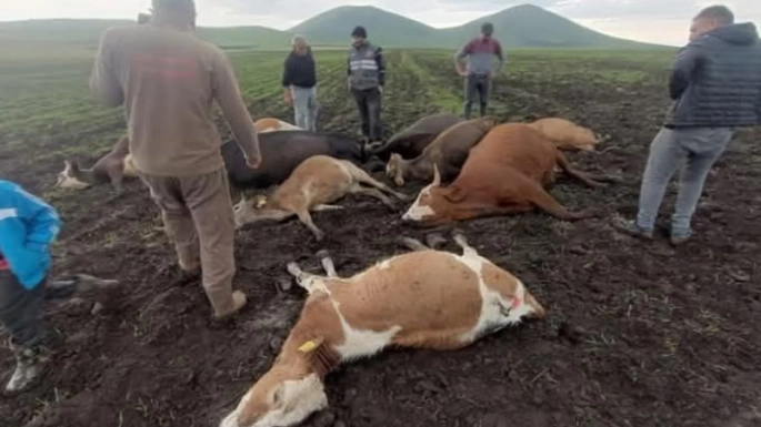 Kağızman ilçesinde yıldırım düşmesiyle 2 çoban yaralandı 10 büyükbaş hayvan telef oldu.