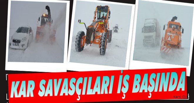 Kars Ardahan Iğdır Otoyollarında yopun kar yağışı devam ederken karayolları ekipleri ise kar yağışına rağmen ulaşımın kesintisiz sürüdürülebilmesi için yağan kara kaşrın amansız mücadelesini gece gündür durmadan veriyor.