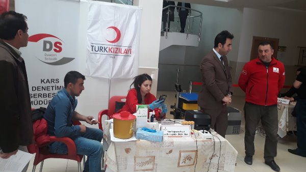 Kars Olay- Türk Kızılayı Kan Merkezi tarafından Kars Adliyesinde kan bağışı kampanyası düzenlendi. Kars Adliyesi zemin katında kurulan kan bağışı standına hakim, savcı, avukat ve adliye personeli kan bağışında bulundular.