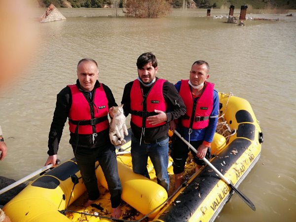 Kars Olay-Kars AFAD kurtarma timleri gelen bir ihbar üzerine Karakurt Barajına gitti. Baraj sularının yükselmesiyle bir kedinin evin çatısında mahsur kaldığını gören ekipler baraja bot indirerek uzun uğraşlar sonucu kediyi kurtararak özgürlüğüne kavuşturdu.