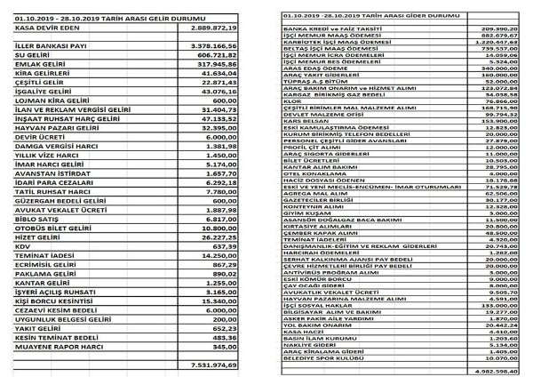 Aradan geçen beş aylık süre sonunda bugün Kars Belediyesi'nden yapılan açıklamada; "En son yayınladığımız 2019 Temmuz ayına ait bilanço sonrası geriye kalan 5 aylık gelir-gider tablolarımızı ay ay yayınlıyoruz." bilgi notuyla ağustos, eylül, ekim, kasım ve aralık aylarını kapsayan 5 aylık gelir gider tablosu kamuoyuyla paylaşıldı.