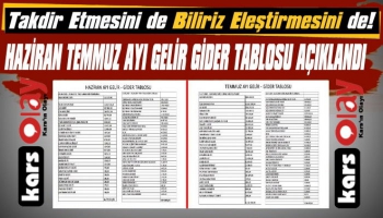 Kars Olay- Kars Belediye Başkanlığı tarafından resmi sosyal medya hesabı twitter üzerinden yapılan açıklamada; "Hizmet binamıza her ay düzenli olarak astığımız belediyemize ait mali gelir-gider afişlerinin tarihi kimliği olan yapımıza fiziki zarar vermesini önlemek maksadıyla bundan sonraki tablolarımız sosyal medya adreslerimizde yayınlanacaktır. -2019 Haziran Ayı Gelir-Gider Tablosu" denildi.