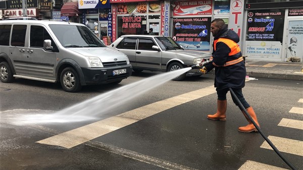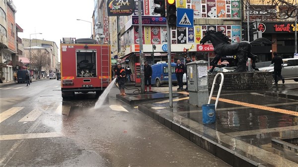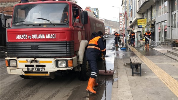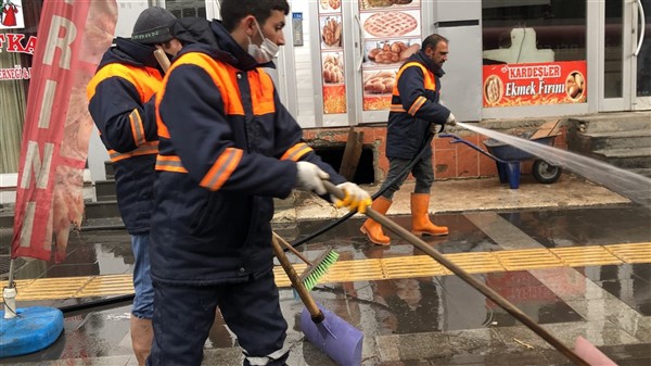 Temizlik İşleri Müdürlüğü ve itfaiye ekipleri çalışmalara kentin en işlek caddelerinden başladı. Koronavirüs salgınının küresel bir sorun haline geldiğine dikkati çekilerek yapılan temizlik çalışmaları titizlikle yürütülürken cadde ve sokaklar toz ve çöplerden arındırılıyor.