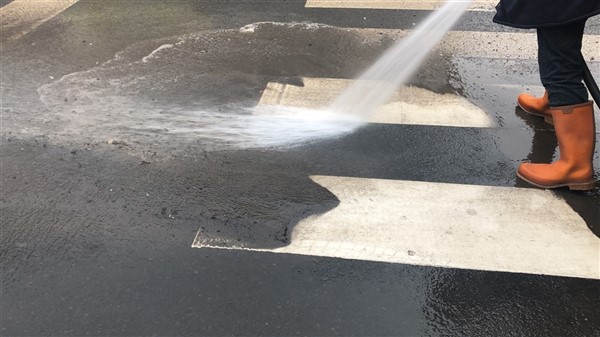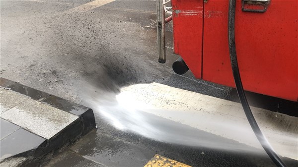Temizlik çalışmalarında en dikkat çeken görüntü ise Faikbey Caddesi’nin kavşak noktalarında biriken ve adeta betona dönen toz kalıpları oldu. Trafik işaretlerinin bile kirden görülmediği caddede itfaiye ekipleri tazyikli suyla sorunu çözdü. Tazyikli suyun verilmesiyle yaklaşık 3 santimetre kalınlığındaki toz ve kir kalıpları kalkınca ortaya da aylardır gizlenmiş trafik çizgileri çıktı.
