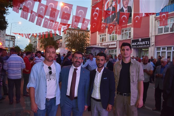 15 Temmuz Demokrasi ve Milli Birlik Günü demokrasi nöbetine Kars Valisi Türker Öksüz, Kars 14’ncü Mekanize Piyade Tugay Komutanı Tuğgeneral Özgür Nuhut, Kars İl Emniyet Müdürü Ümit Bitirik, Kars İl Jandarma Komutanı Albay Osman Kılıç, AK Parti Kars İl Başkanı Adem Çalkın İl Genel Meclisi Başkanı Muzaffer Yağcı, kamu kurum müdürleri ve binlerce Karslı katıldı.