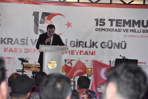 Kars ilimiz, hain darbe girişimini Ankara ve İstanbul’dan sonra en ağır şekilde yaşamasına rağmen, gazi Kars’ımızın kahraman ve vatansever insanları, 29 adet tank, onlarca zırhlı araç ve ağır silahlarla saldırıya canları pahasına karşı koymuş, göğsünü siper ederek, bu ihanet şebekesine dur demiştir.