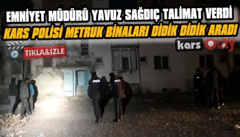 Kars Olay-Kars İl Emniyet Müdürlüğü tarafından kent merkezinde gece saatlerinde bir çok farklı mahallede bulunan metruk yapılar üzerinde asayiş uygulaması yapıldı.