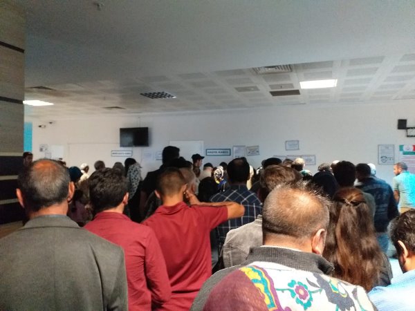 Gazetemizin whatsap ihbar hattına gönderilen ve 08.07.2019 Pazartesi günü sabah 07:00 saatleri olduğu iddia edilen görüntülerde onlarca hastanın muayene olmak için sıra alma kuyruğunda beklediği görünüyor.