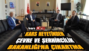 Kars Olay-Kars'ta Çevre ve Şehircilik Bakanlığı tarafından yapılan yatırımlar için Vali Öksüz ile Kars milletvekilleri Arslan ve Kılıç, Bakan Kurum'u ziyaret etti.