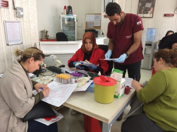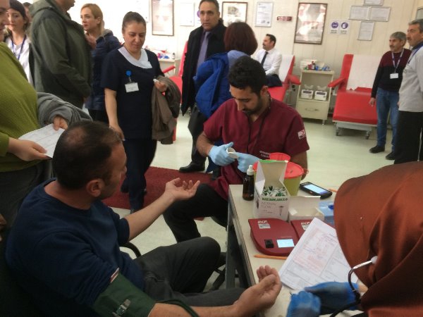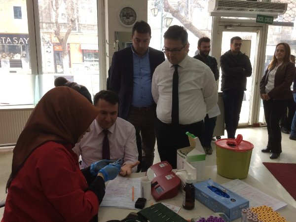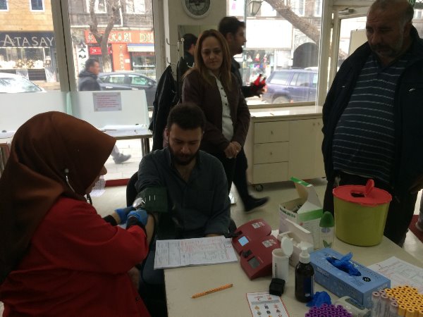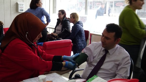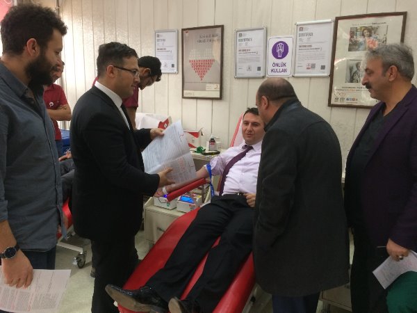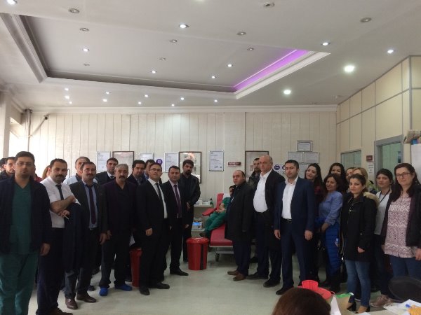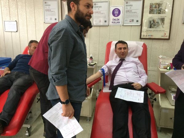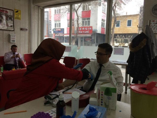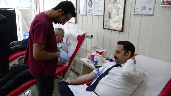 Kars Olay- Atatürk Caddesi'nde bulunan Kızılay Kan Merkezinde gerçekleşen kan bağış kampanyasına Kars İl Sağlık Müdürü Uz. Dr. Zakir Lazoğlu ve İl Sağlık Müdürlüğü idarecilerinin yanı sıra sağlık çalışanları da destek verdi.